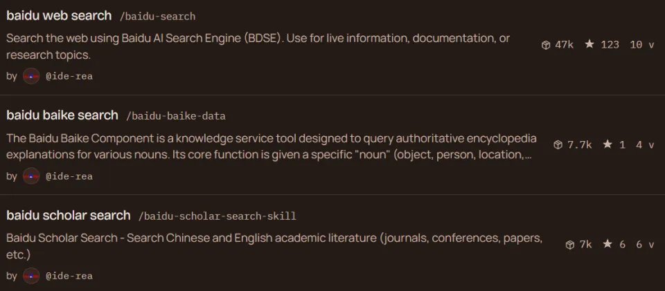 百度扔进ClawHub的不是一个搜索框,而是一整套「中文信息基础设施」:搜索负责抓实时资讯,百科负责锚定权威事实,学术检索负责啃硬骨头。