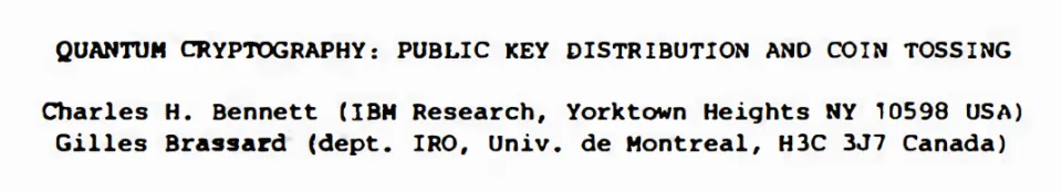 1984 年,受已故合作者 Stephen Wiesner 观点的启发,Bennett 与 Brassard 提出了首个实用的量子密码学协议,即现在的 BB84 协议。在论文《量子密码学:公钥分发与掷币》中,他们证明了通信双方可以建立由物理学定律保证安全的秘密加密密钥,即使面对拥有无限计算能力和高度成熟技术(如量子计算机)的对手,该密钥依然安全。