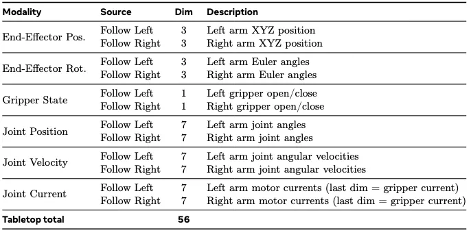 这 56 维信号远超常规的机器人学习数据集,它不仅涵盖了双臂各自 7 DOF 的关节位置、末端位姿、夹爪状态以及 3 路同步视频流,更重点保留了电机电流数据和关节速度数据。