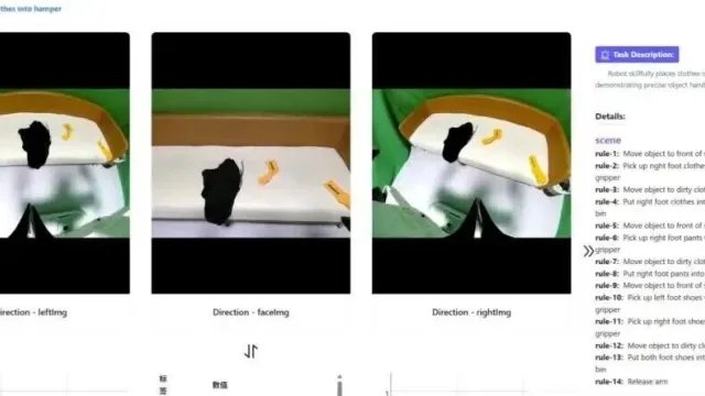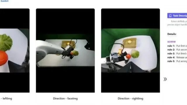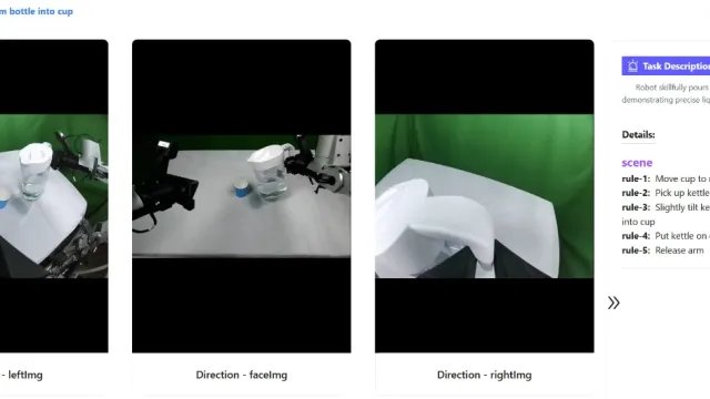 一个将水壶的水倒入杯子任务,这里可以同时看到三个视角的画面,右侧还提供了任务描述以及场景细节