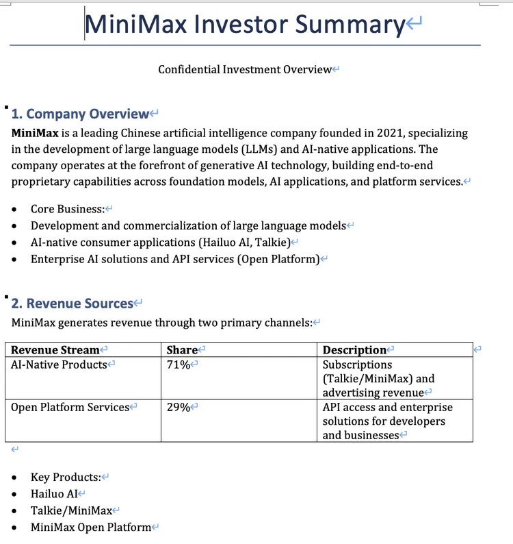 3、基于以上财务数据,用 Word 写一份 500 字的投资者摘要,受众是不熟悉 AI 行业的港股散户投资者,重点说清楚:这家公司现在靠什么赚钱、为什么一直亏损、什么时候可能扭亏。注意:结果用英语输出