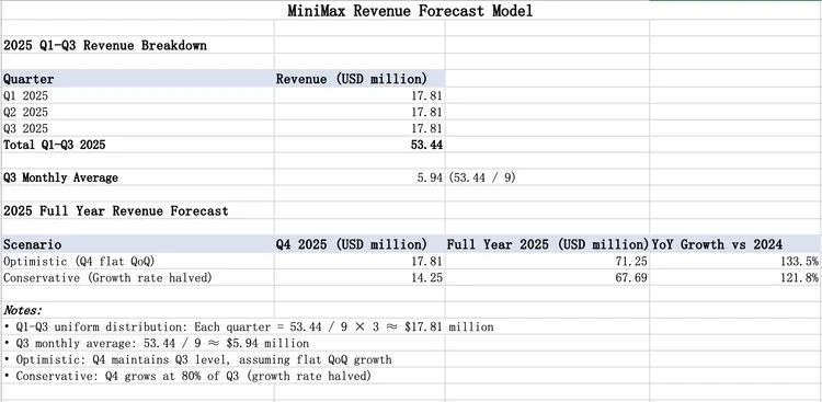 2、基于以上数据,帮我建一个简单的收入预测模型,预测 2025 年全年收入。假设 Q4 收入环比 Q3 持平,给出两个情景:乐观(维持 Q3 增速)和保守(增速降一半)。