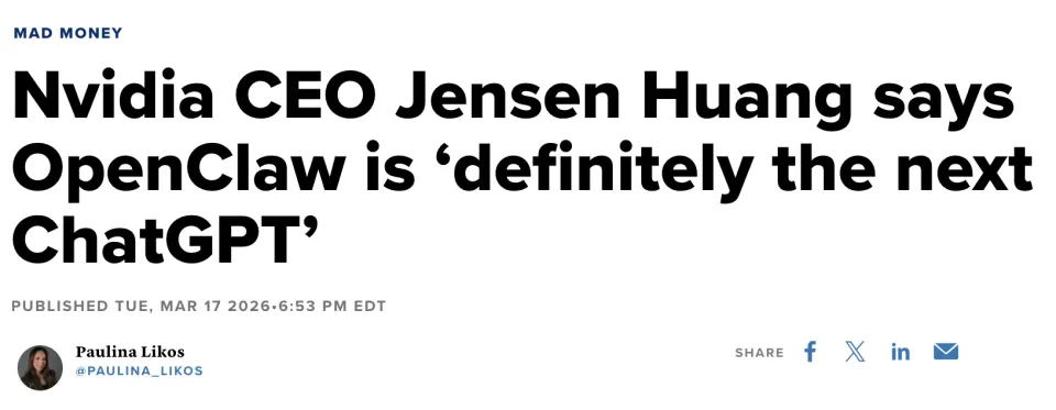 时代变了,就像黄仁勋判断的那样:OpenClaw,就是下一个ChatGPT。