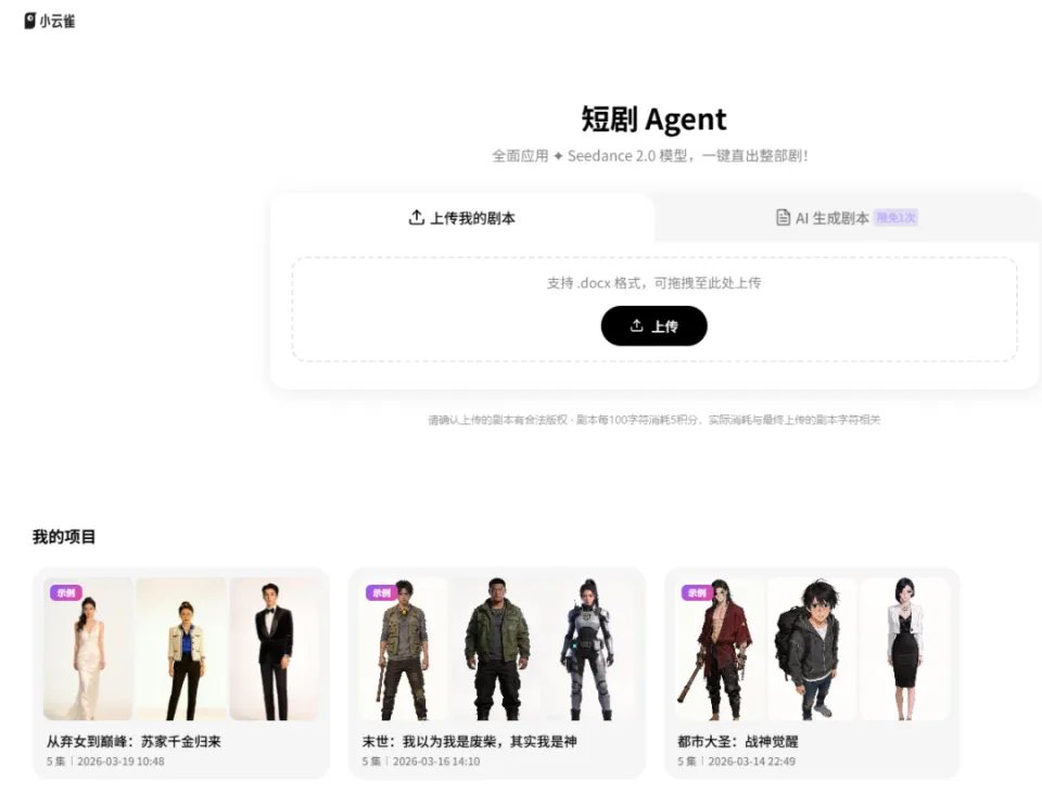 3 月 19 日,字节跳动旗下小云雀 AI 官宣上线短剧 Agent 功能。