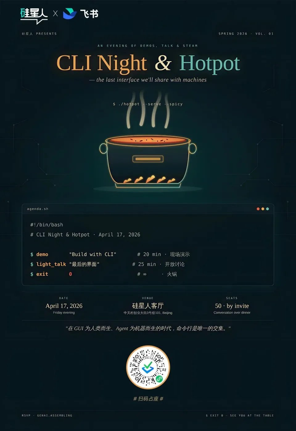 这个月底,我们想组一场小范围的 CLI 火锅局,邀请一线的 AI Native Founder 来坐一桌。