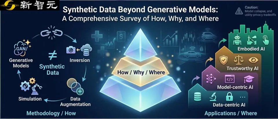 【新智元导读】最新研究提出合成数据的全新分类框架,突破「生成模型=合成数据」的传统认知,涵盖反演、仿真与数据增强等方法,并按应用层次划分为数据中心AI、模型中心AI、可信AI和具身AI。