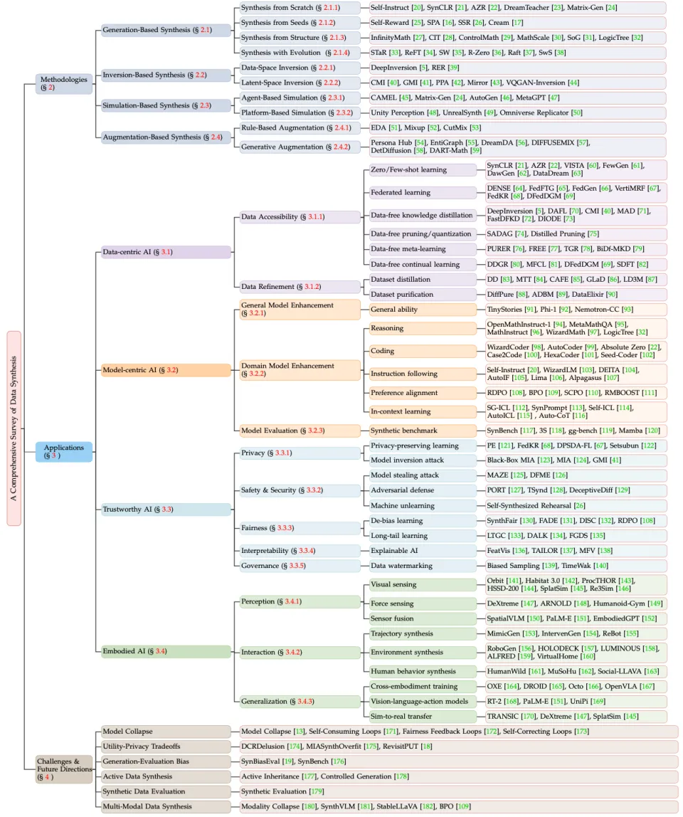 这篇综述最值得关注的地方,不只是整理了现有方法,更重要的是它改变了我们理解合成数据的方式: 合成数据不再只是生成模型的一个应用方向,而正在成为连接数据、模型、评测与真实世界交互的新型基础设施。