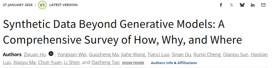 论文链接:https://www.techrxiv.org/users/1016218/articles/1378802-synthetic-data-beyond-generative-models-a-comprehensive-survey-of-how-why-and-where