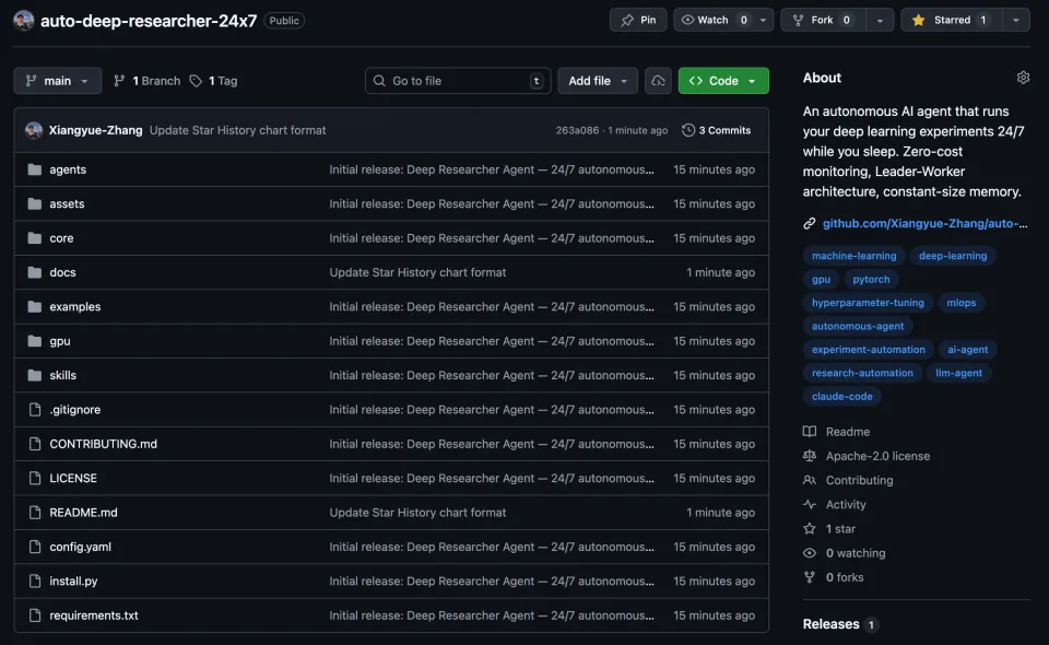 GitHub上最近有一个开源项目叫Deep Researcher Agent的框架,正面回答了这个问题——你睡觉的时候,它在炼丹;你写论文的时候,它已经把 results table 准备好了。