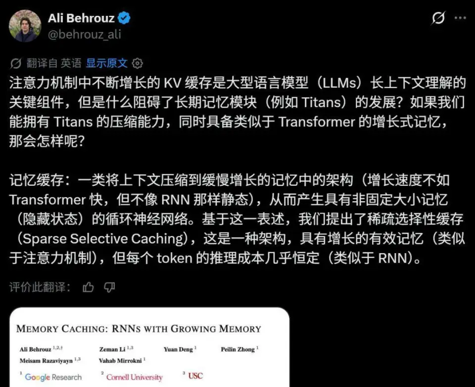 论文:《Memory Caching: RNNs with Growing Memory》