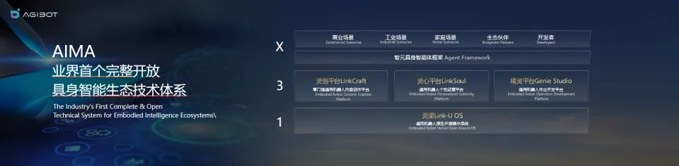 智元发布AIMA(AI Machine Architecture)全栈生态开发平台,「1+3+X」架构。