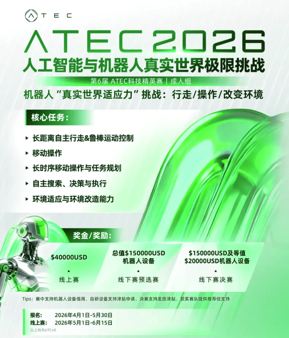 如果你的系统已经做好走出仿真环境,进入真实世界的准备,那么,ATEC2026 报名已经开启!