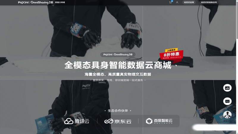 继去年 10 月帕西尼前瞻布局宣布将打造 “具身智能数据云商城”,帕西尼联合京东云、腾讯云、百度智能云共同打造的全球首个百亿级规模全模态具身智能数据云商城,即日起全面对外开放。