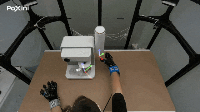 高效率、低成本:通过真人佩戴 PXCap 设备进行人类日常行为效率的高效采集,以 3~6 倍于传统遥操作的效率,捕捉了人类自然、流畅且连续的日常行为数据。这种方式不仅摆脱了对昂贵机器人本体的依赖,更保留了人类在长程任务中试探、纠错等隐性策略与连贯性。