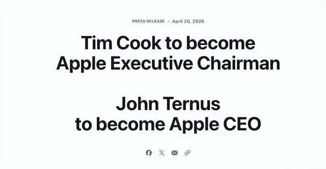 在此前未有任何公开的继任计划的情况下,当地时间4月20日,苹果宣布重大人事变动。