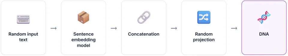最后,基于Johnson–Lindenstrauss lemma所支撑的随机投影思想,采用随机高斯投影将这一高维表示压缩到低维 DNA 空间。
