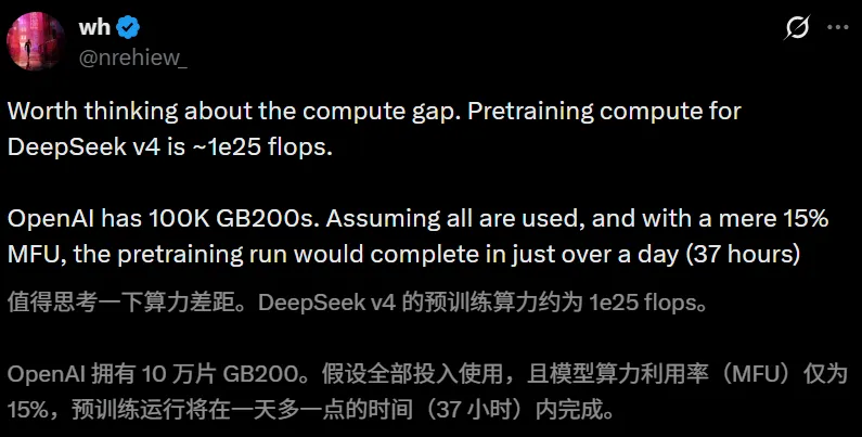 DeepSeek V4-Pro的预训练计算量大约1e25 FLOPs。