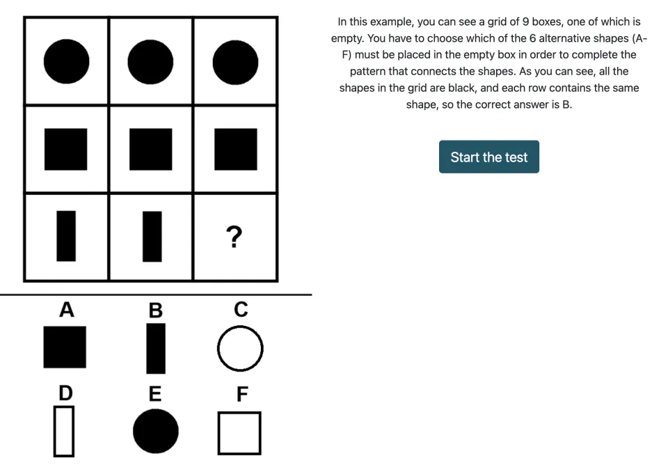 门萨Norway采用3×3九宫格格式(八张图+空缺第九张),完全非语言、非文化依赖,考察抽象推理。