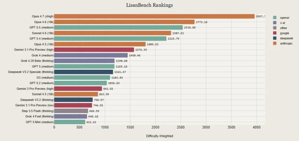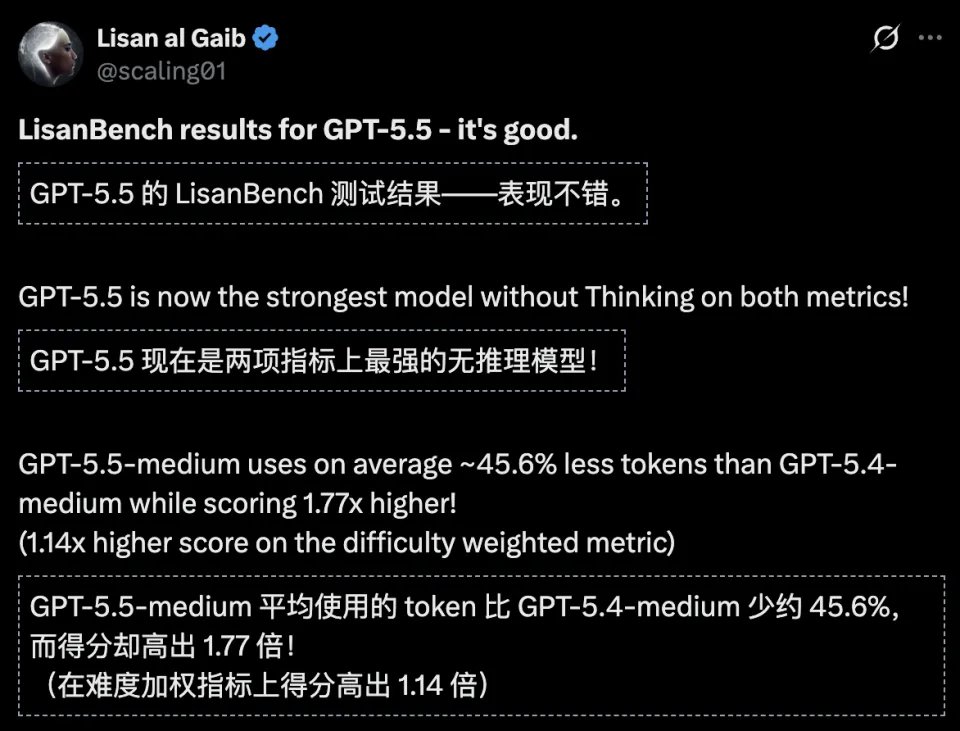 在LisanBench测试中,GPT-5.5是最强的双料非推理模型!
