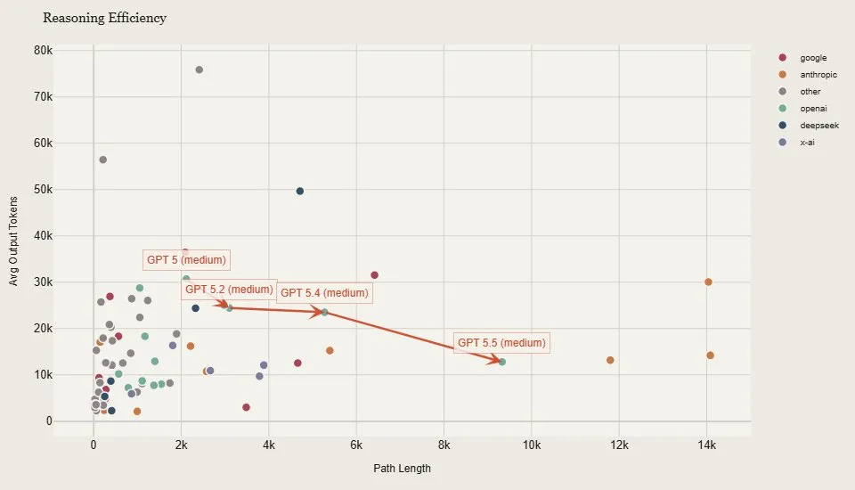 自从GPT-5以来,OpenAI模型的推理效率持续提升: