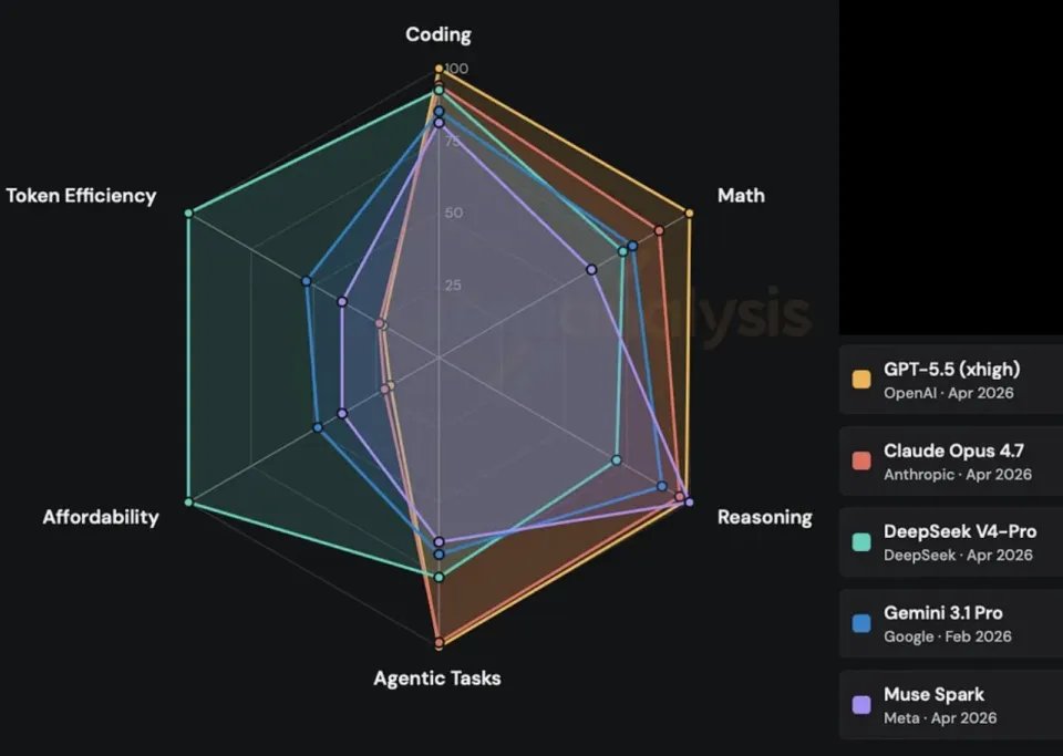 在智能体任务上,Claude和GPT-5.5远胜于其他所有模型。