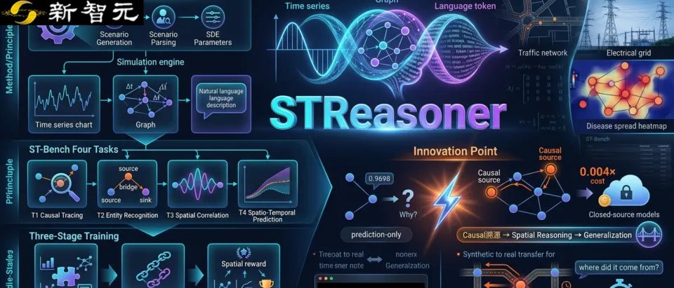 【新智元导读】STReasoner是首个结合时间序列、空间结构和自然语言的推理模型,能识别异常源、追踪影响路径,理解节点间关系并预测未来发展。相比主流预测模型,STReasoner更注重因果与结构推理,且计算成本极低,展现出极强的泛化能力和推理能力。