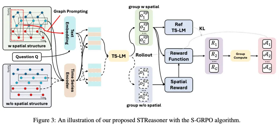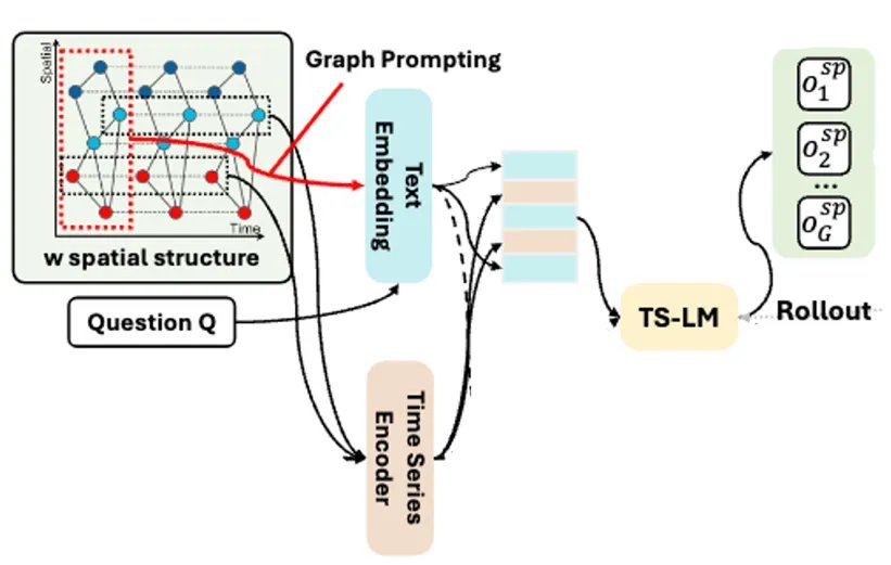 在时空推理任务中,模型需要同时处理三类信息:时间序列、空间结构以及自然语言问题。因此,一个核心问题是:如何让语言模型既「看懂时序数值」,又「理解图结构」,还能完成推理?