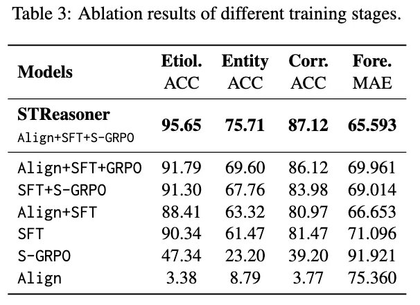 STReasoner采用三阶段训练策略:
