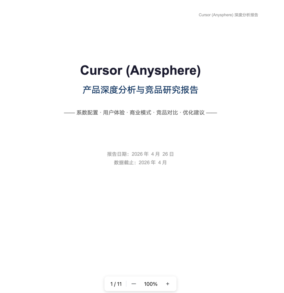 我要梳理一下AI Coding赛道,正好Cursor最近新闻挺多的。你帮我把核心功能、用户体验、商业模式这几块拆一下,补补竞品,然后做个对比表格,维度的话就功能差异、用户画像、怎么收费的……最后帮我总结一下壁垒在哪,还有潜在风险,模型依赖啊留存啊这些。
