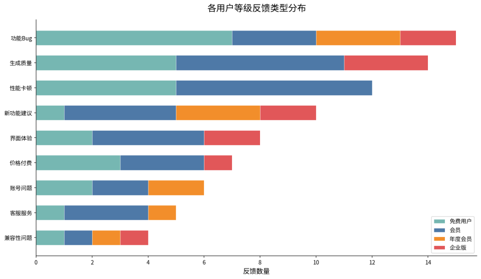 赶紧看一下用户反馈,大家都在抱怨啥,什么问题比较集中,最好能看出个比例来。反馈特别多的那种要单独拎出来……