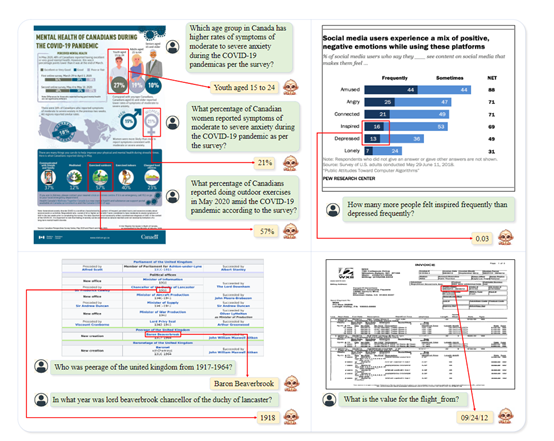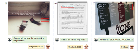 文档导向问答:Monkey在DocVQA、ChartQA、DeepForm等文档图像理解数据集上也取得了不错的成绩。