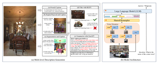 高质量训练数据集是提升大模型能力的关键点之一,所以,研究人员生成了数十万条高质量的图像描述数据,并通过多级方法捕捉图像的全貌和局部细节。